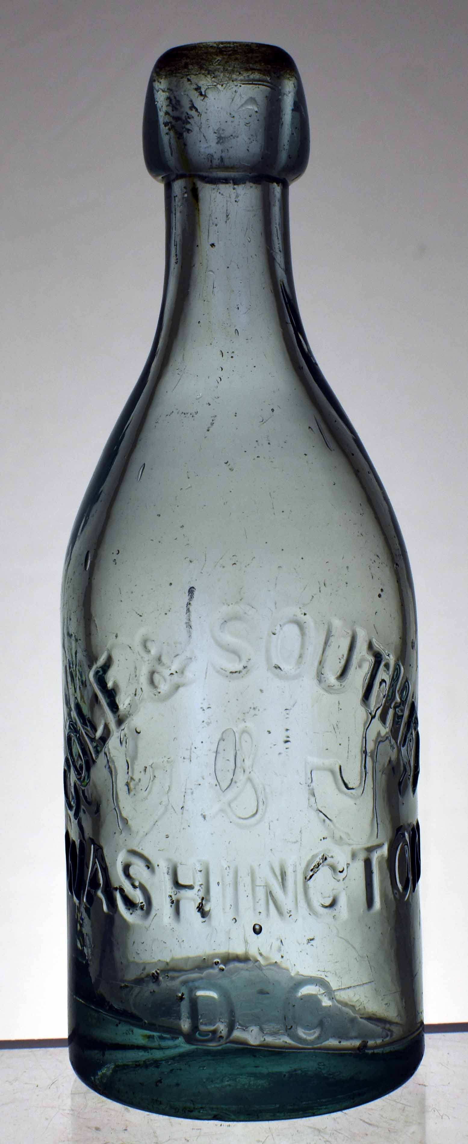 book # 166 This is an aqua 7.25" tall blobtop bottle embossed: front: COLE & SOUTHEY / WASHINGTON / D.C. rear: C & S |