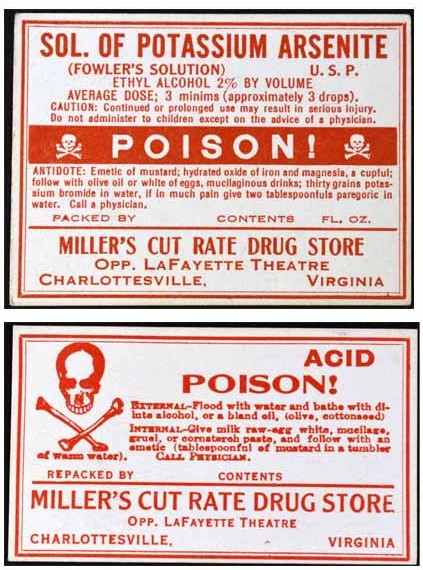 (skull & cross bones) / POISON / GUY MILLER'S DRUG STORE / Charlottesville, Va.