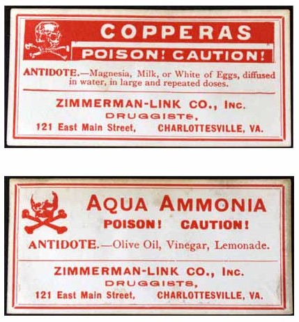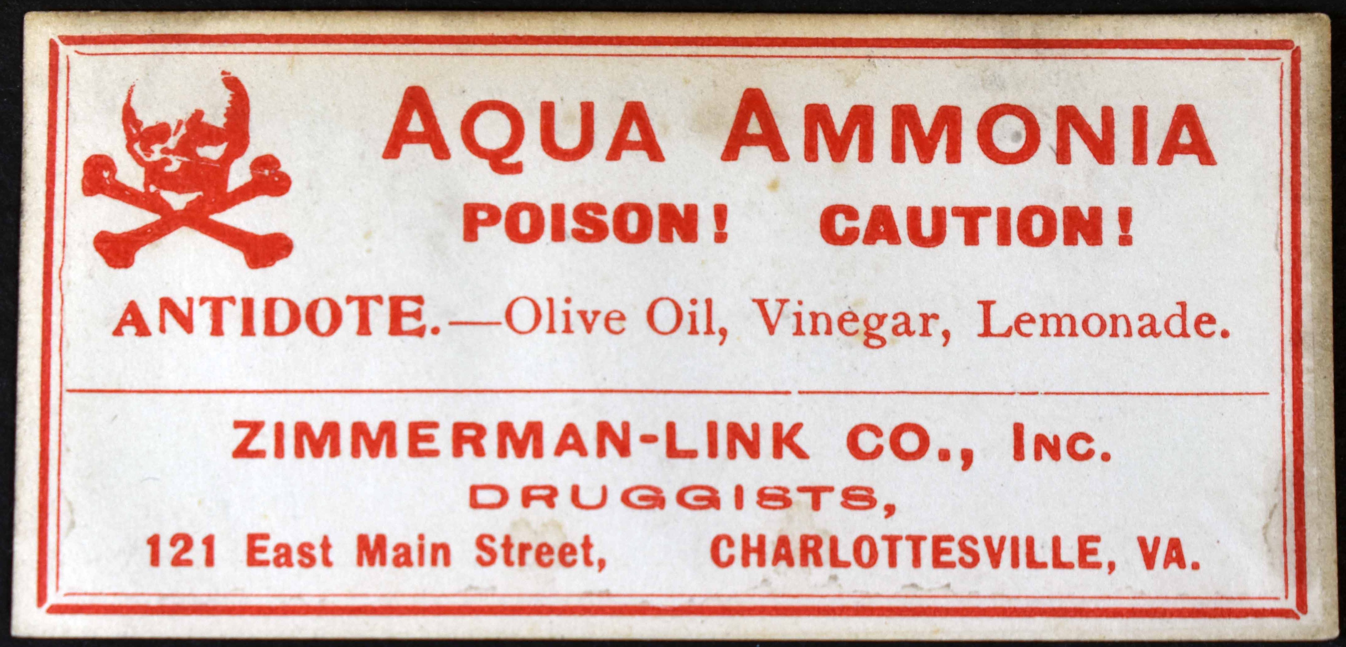 ZIMMERMAN LINK CO / PRESCRIPTION DRUGGISTS / 218 WEST MAIN STREET. CHARLLOTESVILLE, VA.