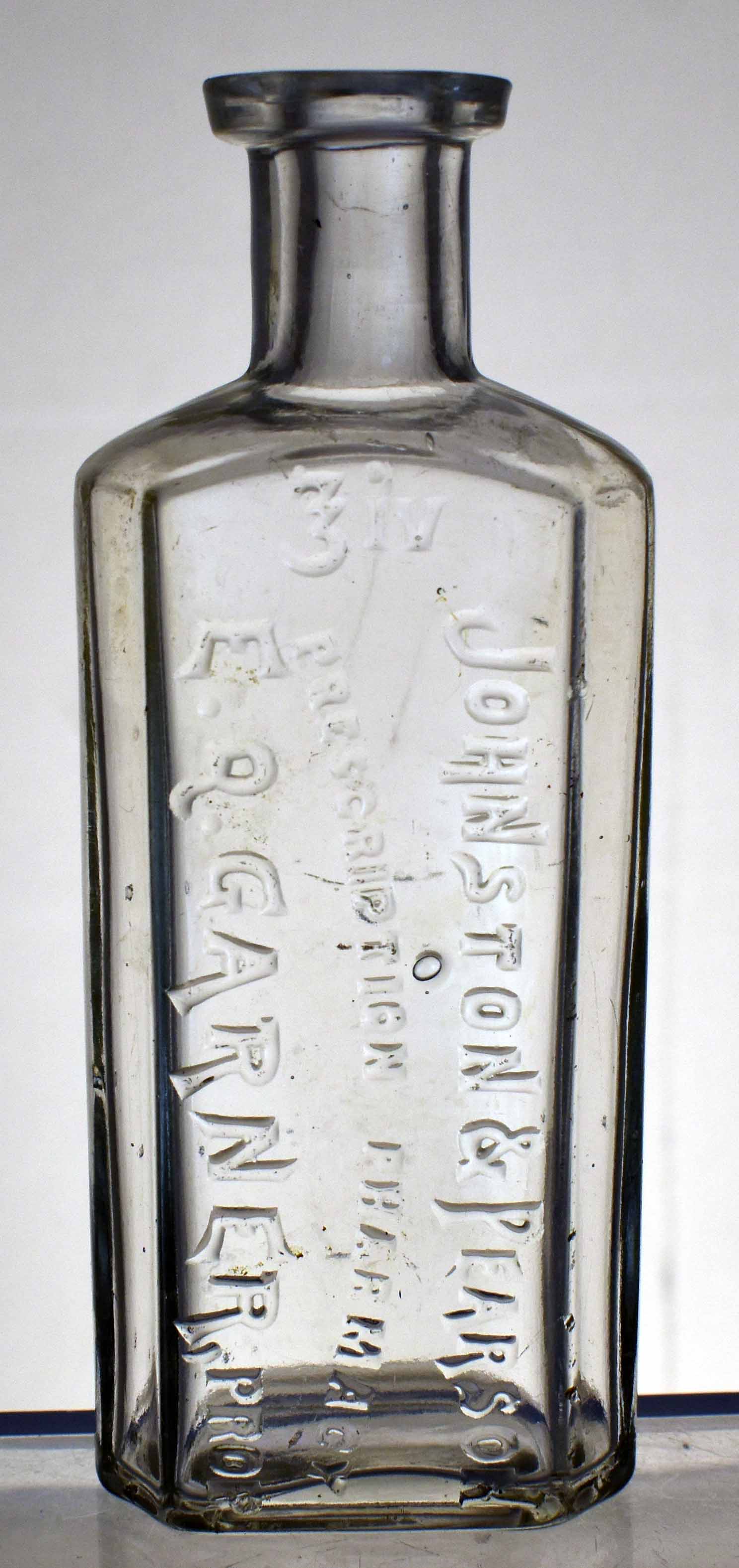 This is a clear, 3.5" bottle, embossed: vertical: F. W. JOHNSTON / DRUGGIST / FREDERICKSBURG, VA. base: V / W. T. & Co. |