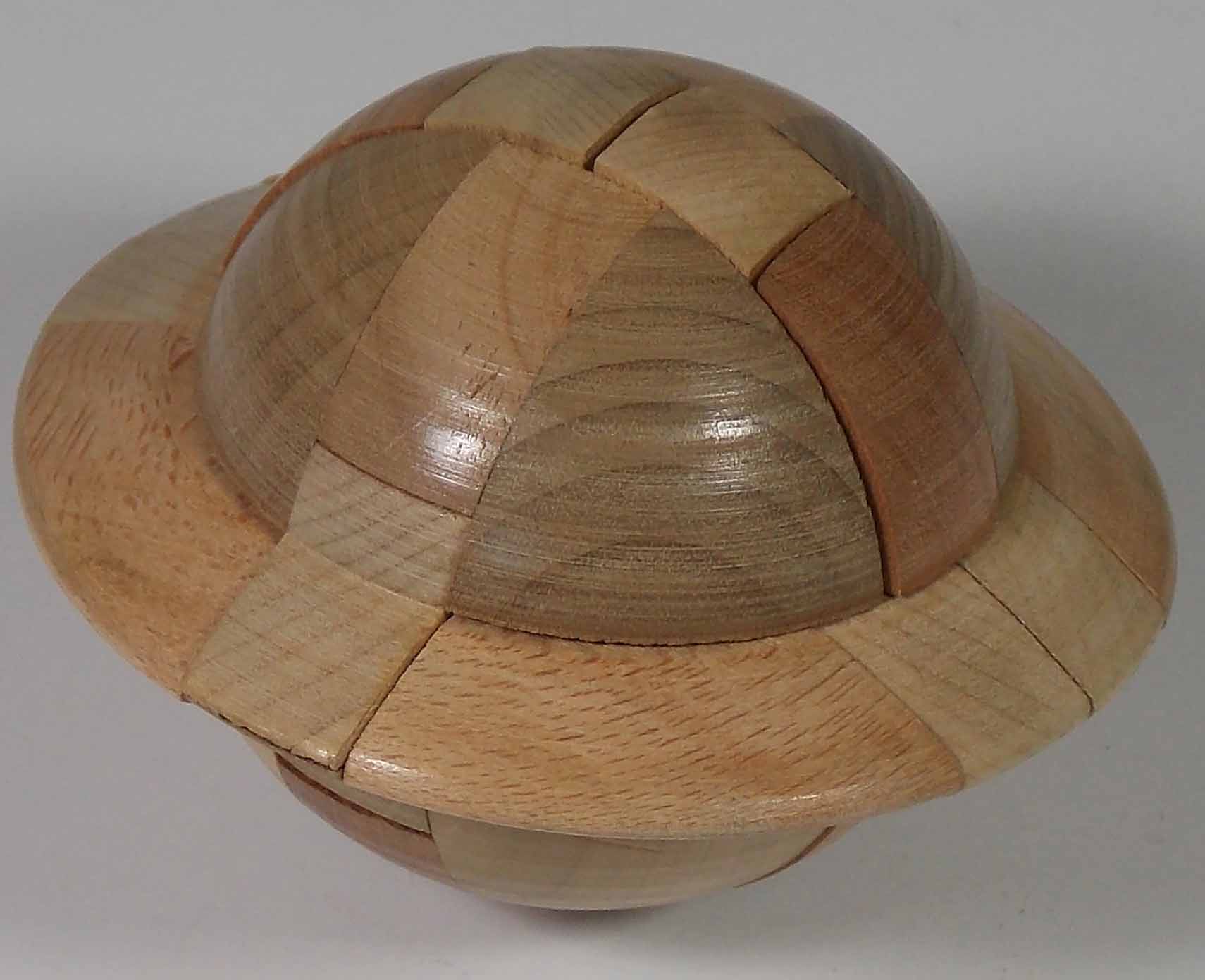 (Wood Saturn) | (unknown) | 12-piece wood puzzle shaped like a ball with ring around it |