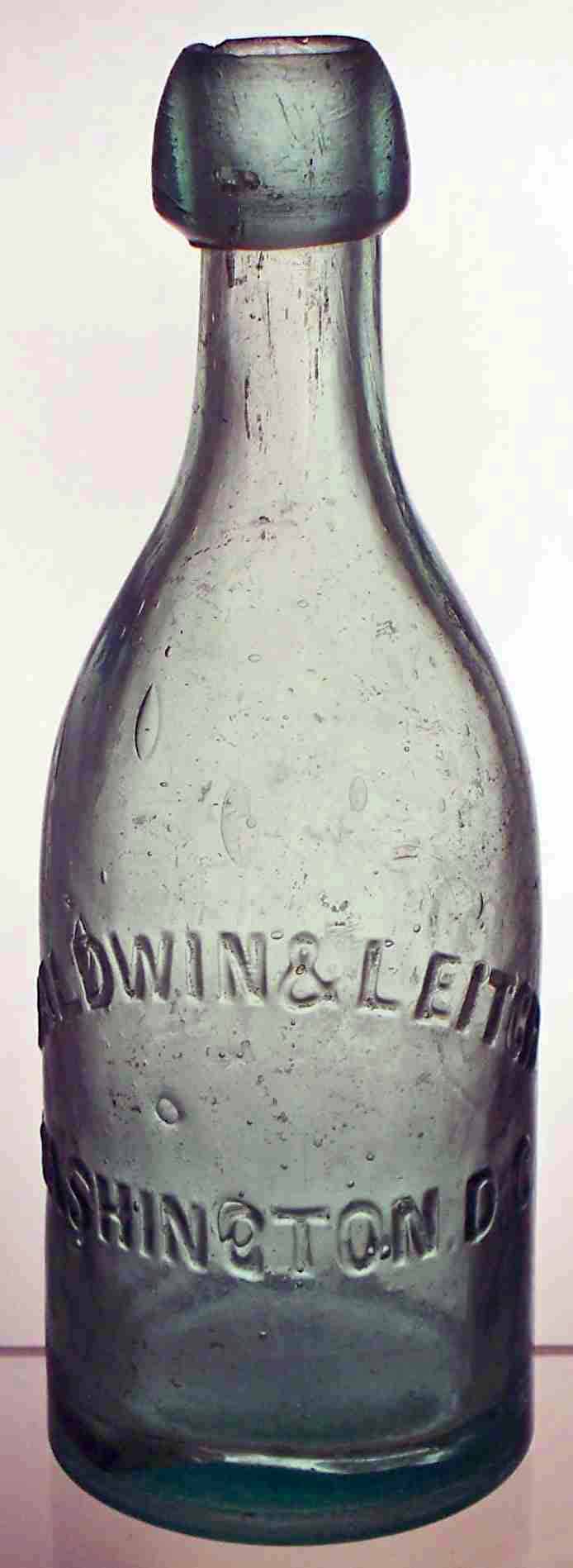 book # 60 This is a 7" aqua squat soda bottle, embossed: front: BALDWIN & LEITCH / WASHINGTON, D.C. back: B & L |