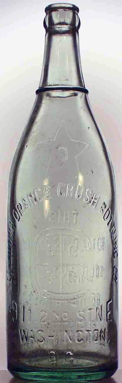 book # 171 11.5" aqua crown top (ABM) embossed: front: COLUMBIA ORANGE CRUSH BOTTLING CO / (large C with O C B Co inside) / 911 2nd ST NE / WASHINGTON / D.C. back: (star with C inside) / THIS / BOTTLE IS NEVER / SOLD AND MUST / BE RETURNED / REGISTERED / CONTENTS 24 FLU OZS |