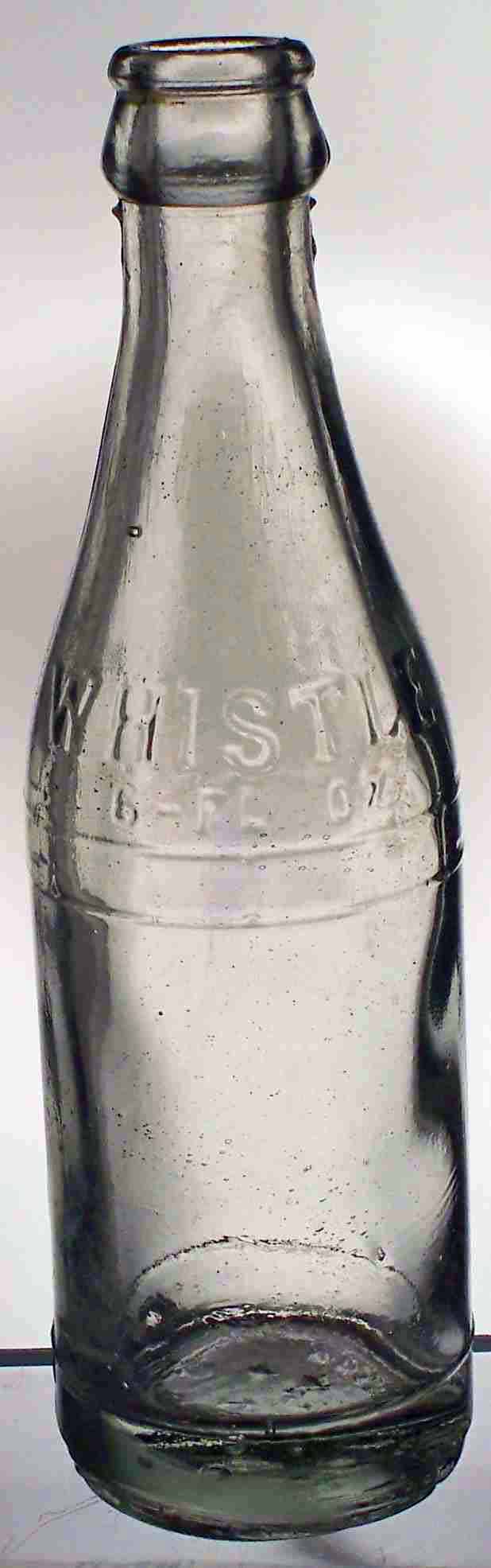 book # 717 This is a 7.8" clear machine-made crown top embossed: both shoulders: WHISTLE / 6-FL. OZS. base: WASHINGTON / AGW / 12 4 / D.C. |