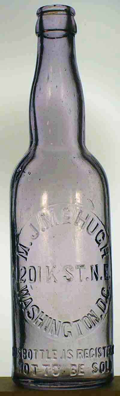 book # 410 This is a 9.5" SCA lady-leg crown top embossed: oval slug plate: M. J. McHUGH / 1201 K ST. N.E. / WASHINGTON, D.C. below slug plate: THIS BOTTLE IS REGISTERED / NOT TO BE SOLD |