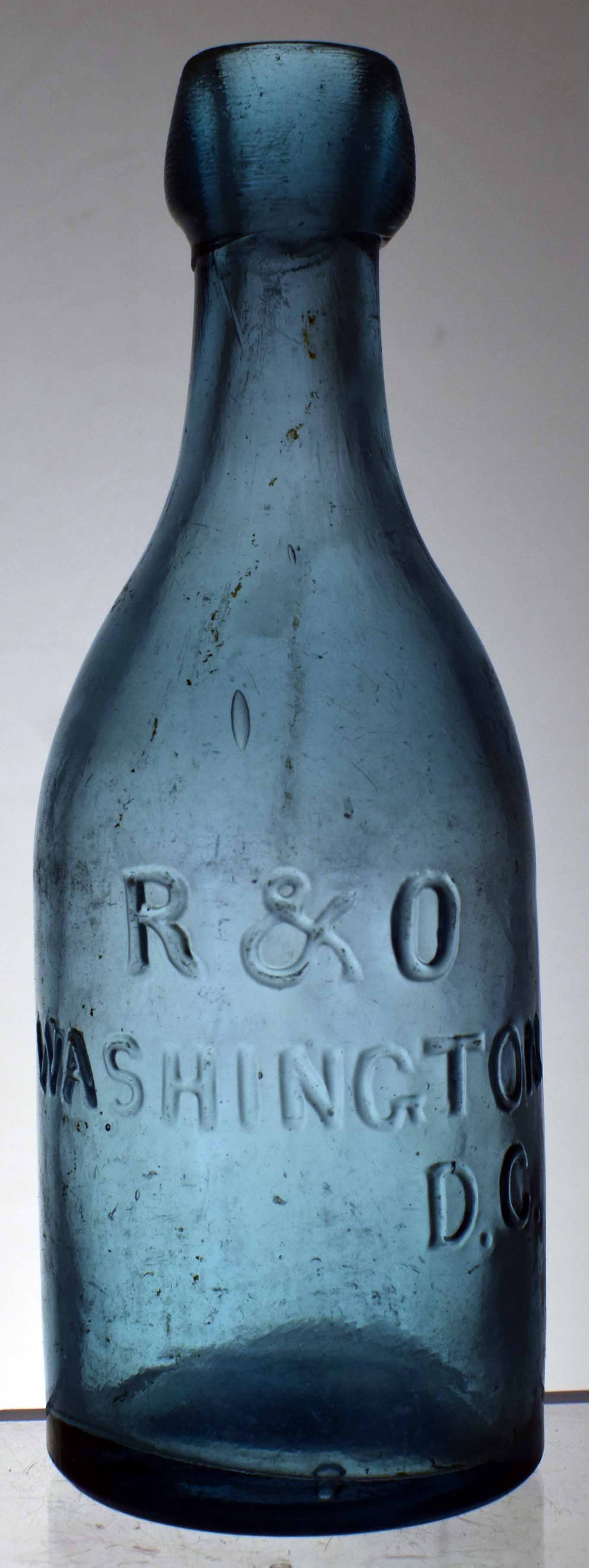 book # (unlisted) This is a bluish-aqua 7.25" short blob top bottle embossed: front: R & O / WASHINGTON / D.C. |