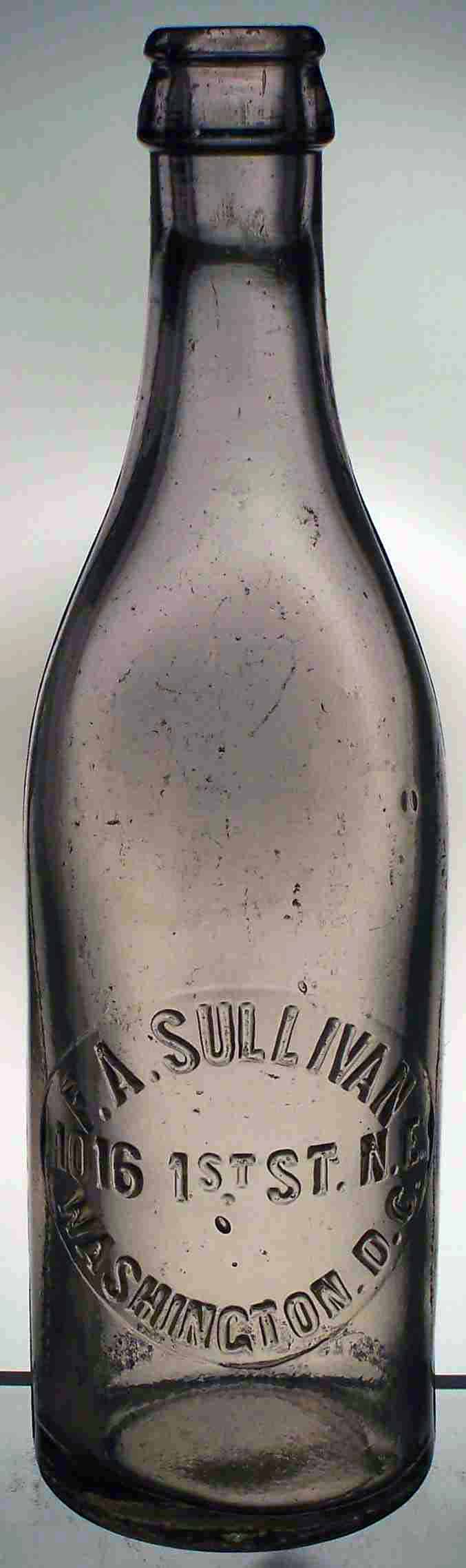 book # 669 This is a 9" sun-colored-amethyst crown top bottle embossed: round slug plate: F.A. SULLIVAN / 1016 1ST ST. N.E. / WASHINGTON, D.C. back: REGISTERED NOT TO BE SOLD |