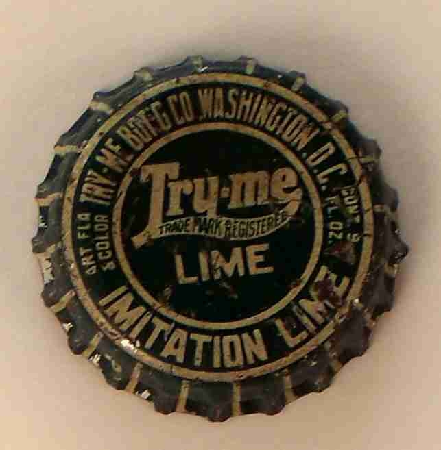 book # 693 This is an 8" machine-made green crown top embossed: front: Try-me Pale / TRADE MARK REG. / BOTTLED UNDER AUTHORITY TRY-ME / BEVERAGE & COMPOUND CO back: Try-me Pale / TRADE MARK REG. / MINIMUM CONTENTS 7 FLU. OZS./ BIRMINGHAM, ALA. base: WASHINGTON / DC |