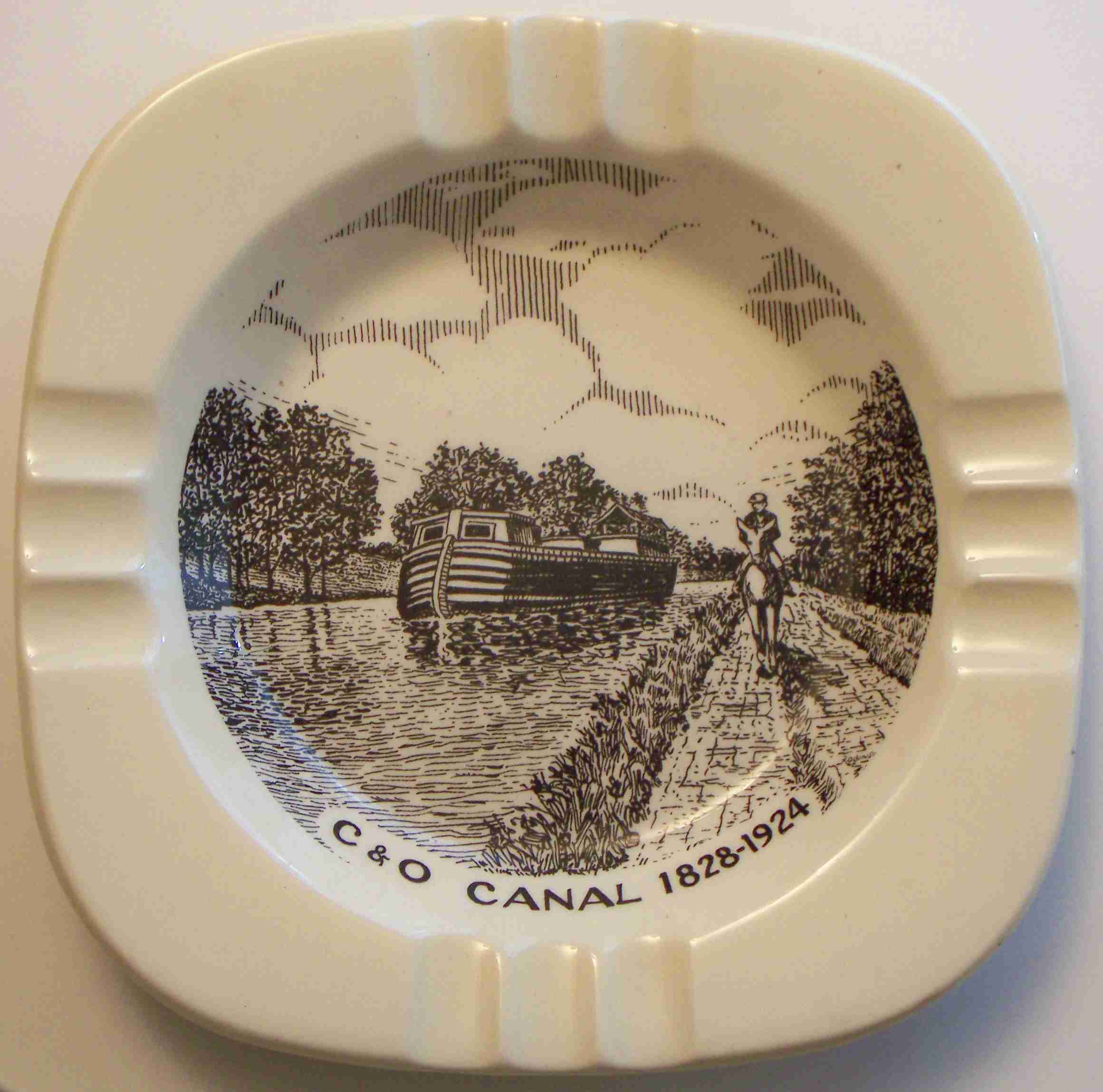 cigarettes. It is white ceramic with black printing. On the back it says it was produced