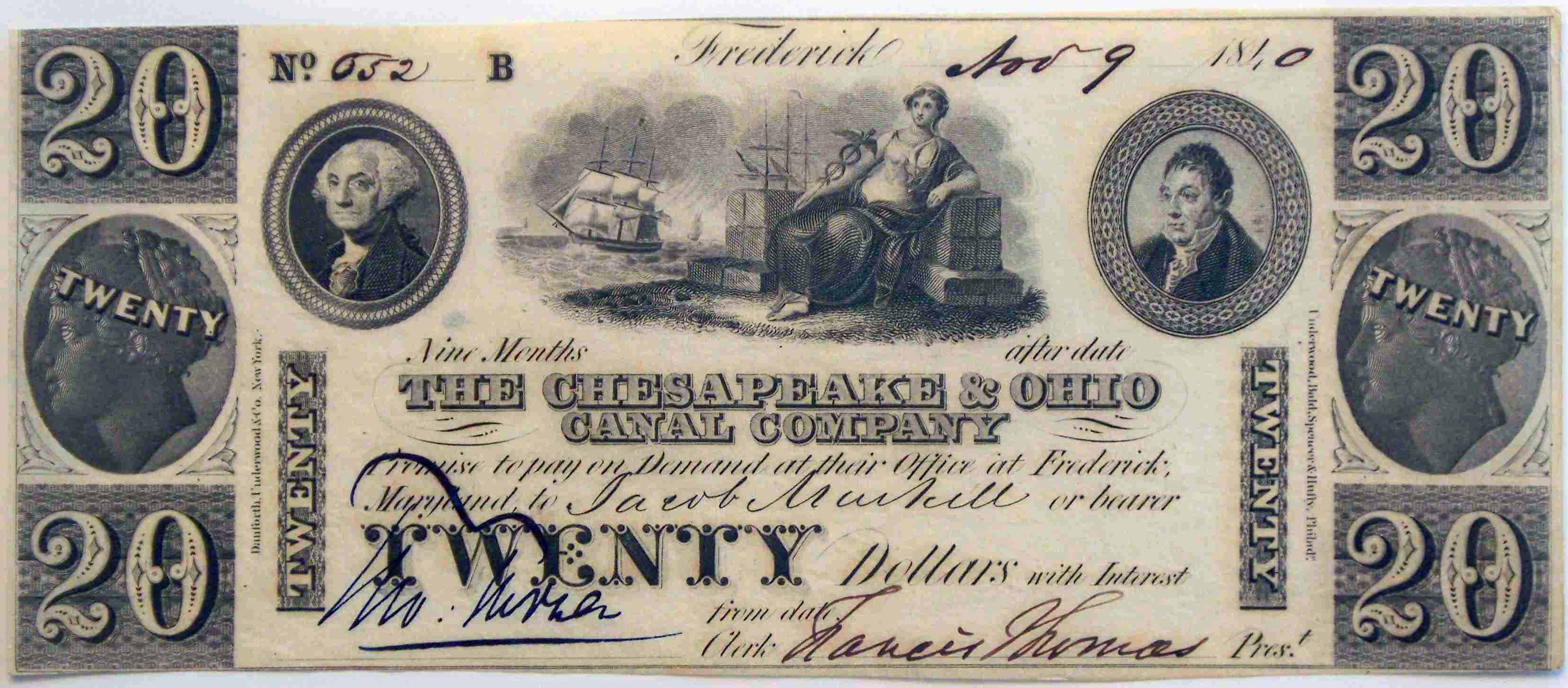 This is a $20 note published in 1840, with the city "Frederick" Maryland printed in the top center.