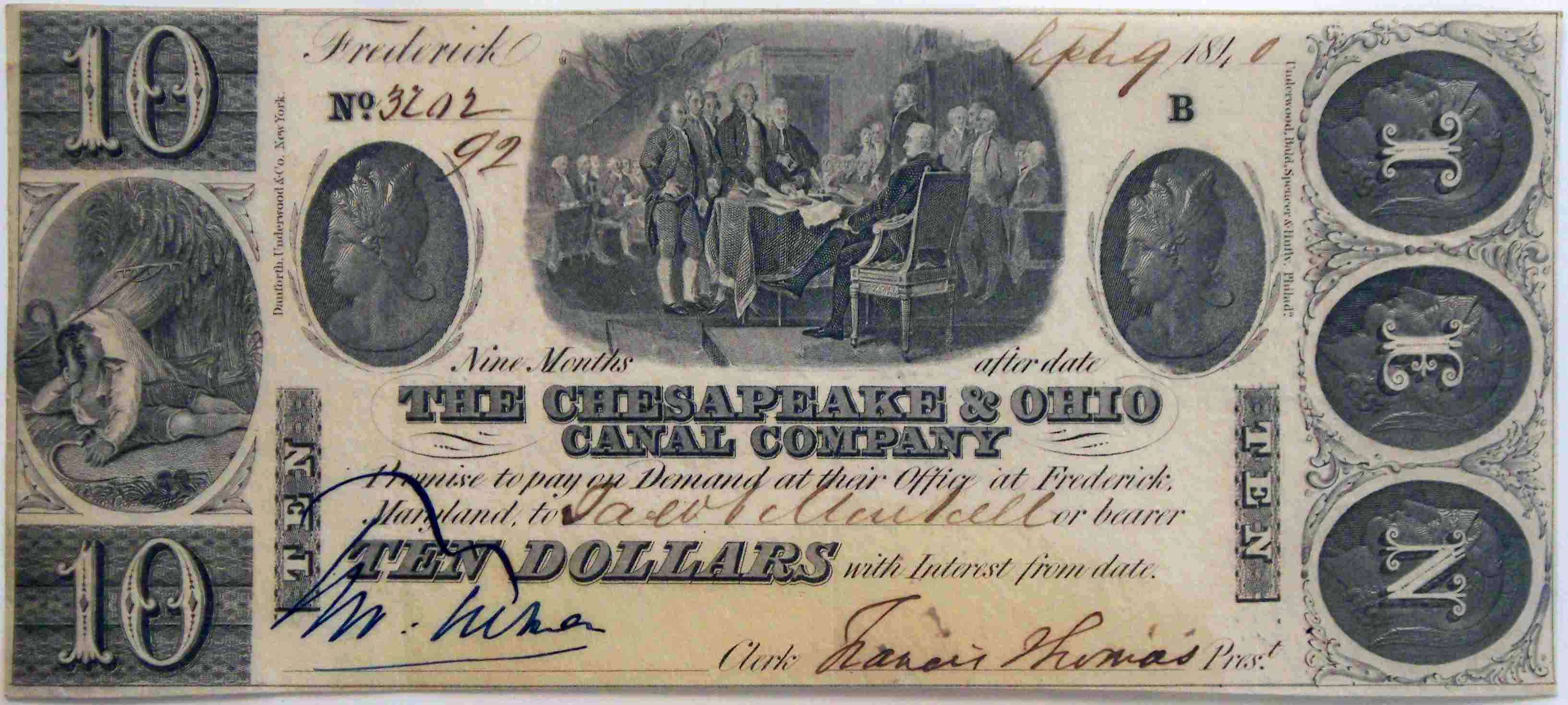 This is a $10 note published in 1840, with the city "Frederick" Maryland printed in the top center.