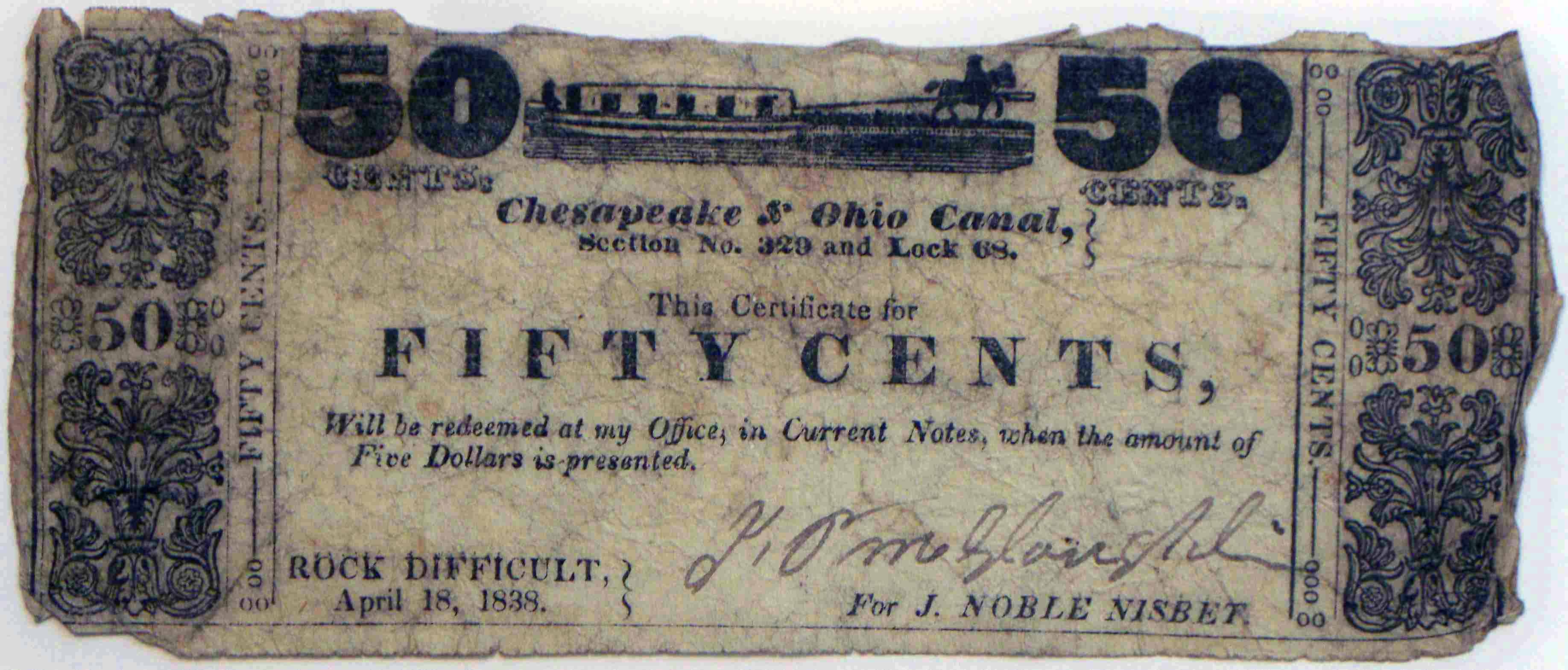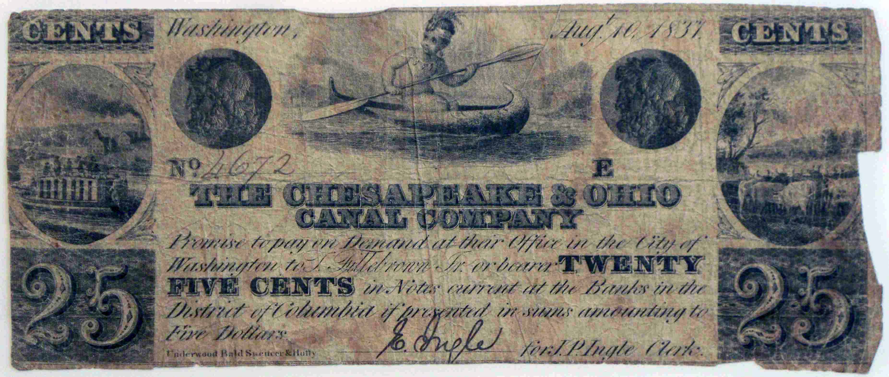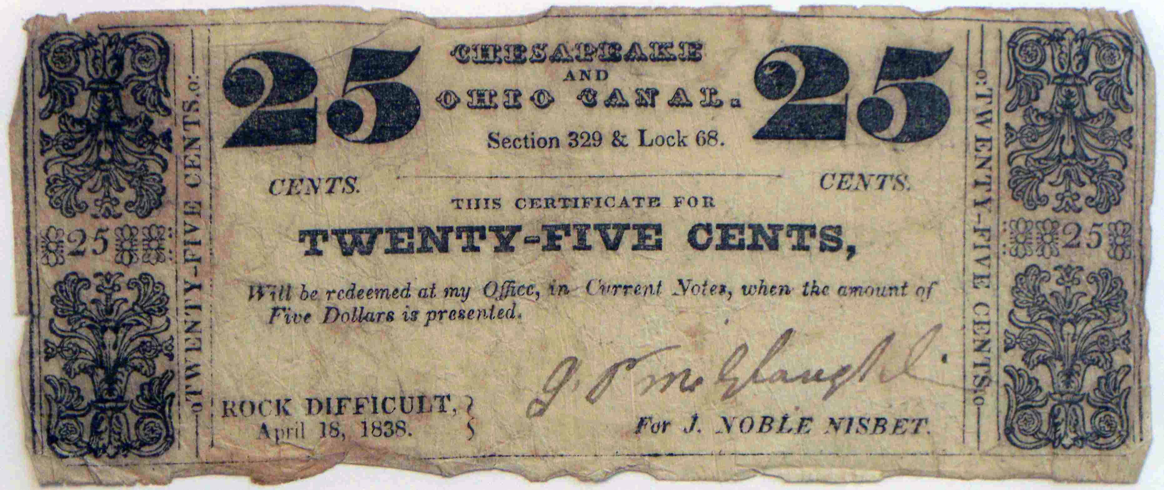 This 25 cent note was issued May 25, 1838 for section number 323, where the Town Creek aqueduct was built.