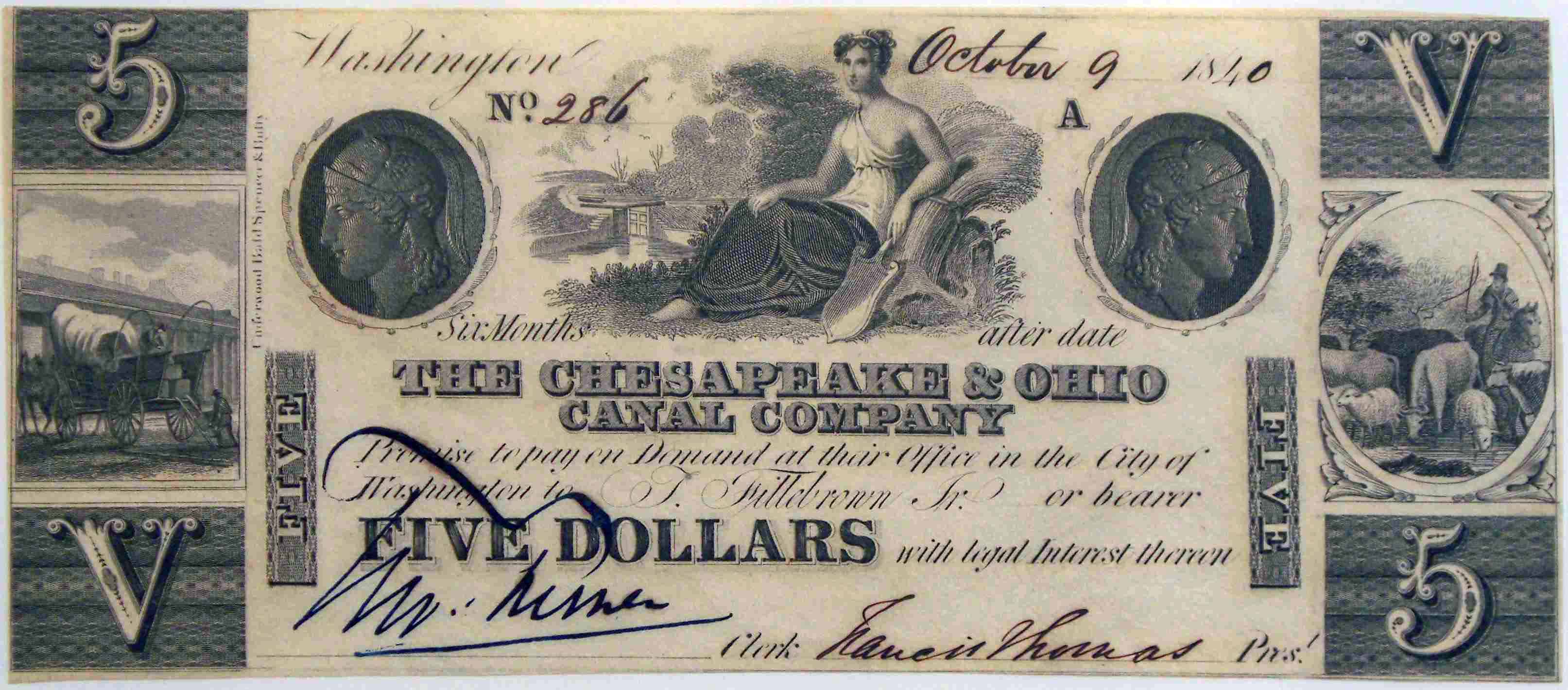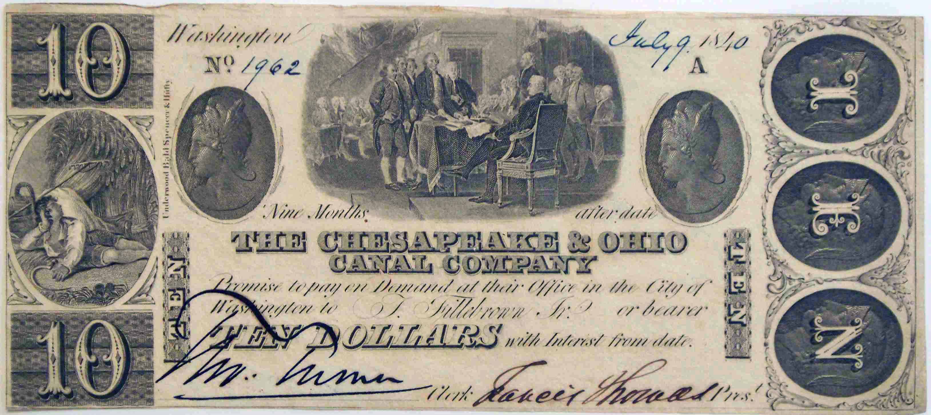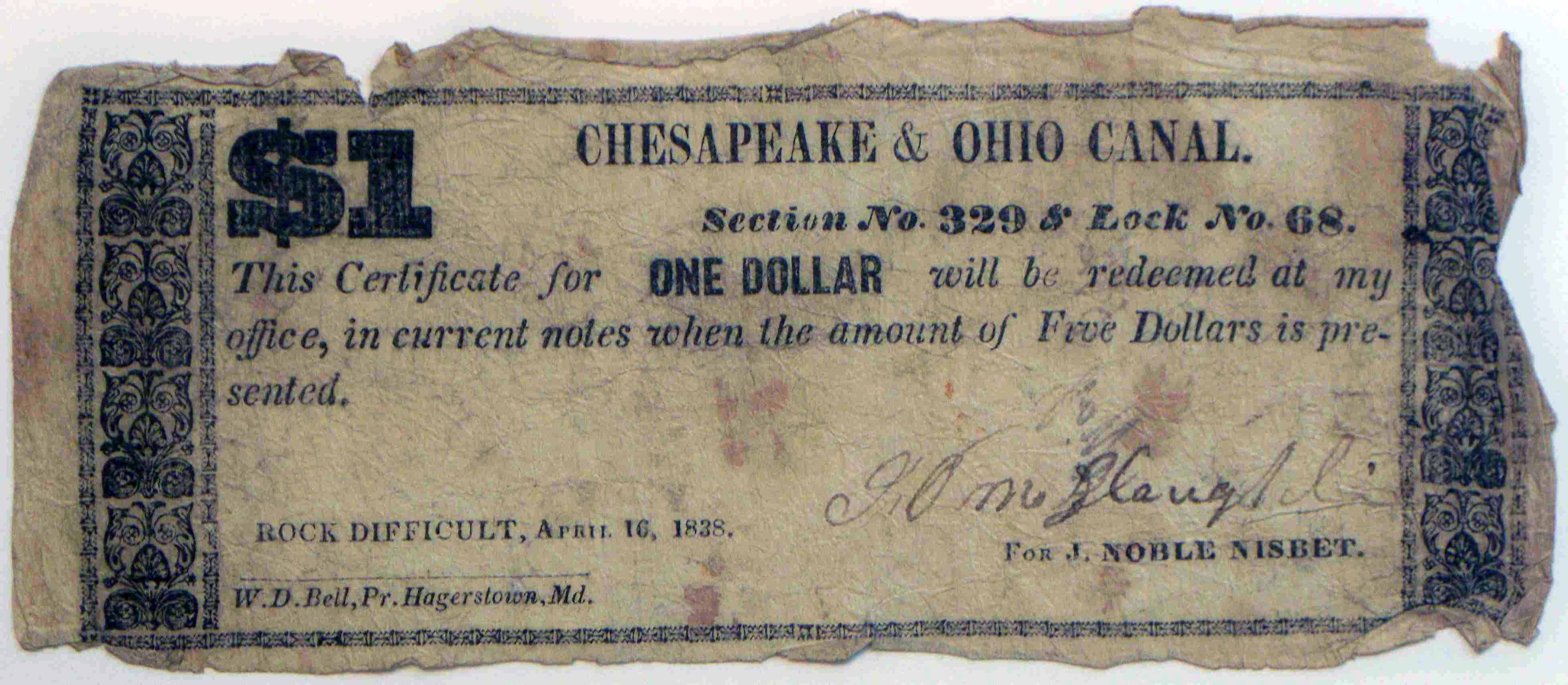 This 25 cent note was issued May 25, 1838 for section number 323, where the Town Creek aqueduct was built.