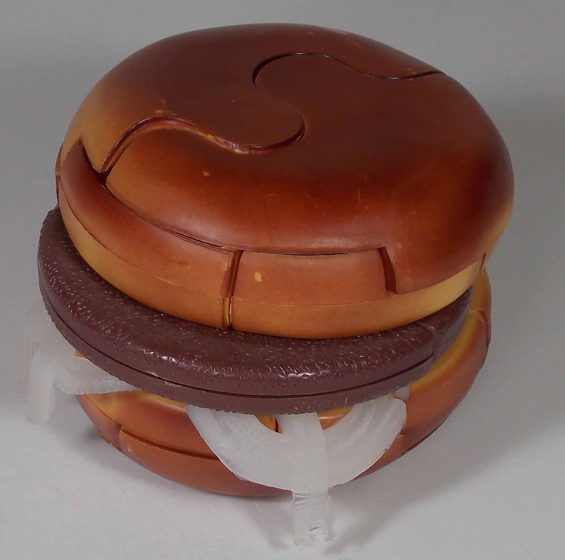 (hamburger) | (unknown) | Plastic hamburger-shaped puzzle |