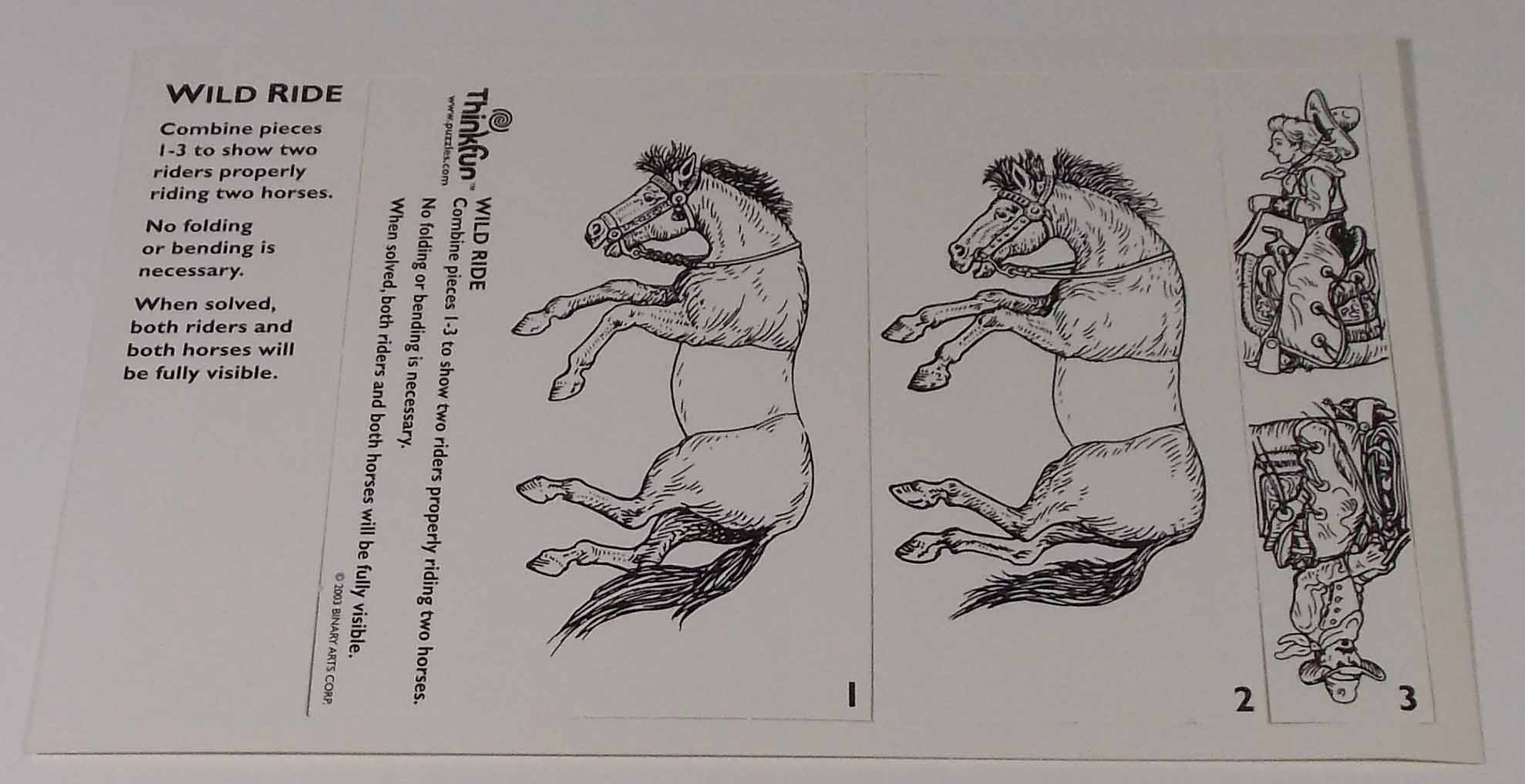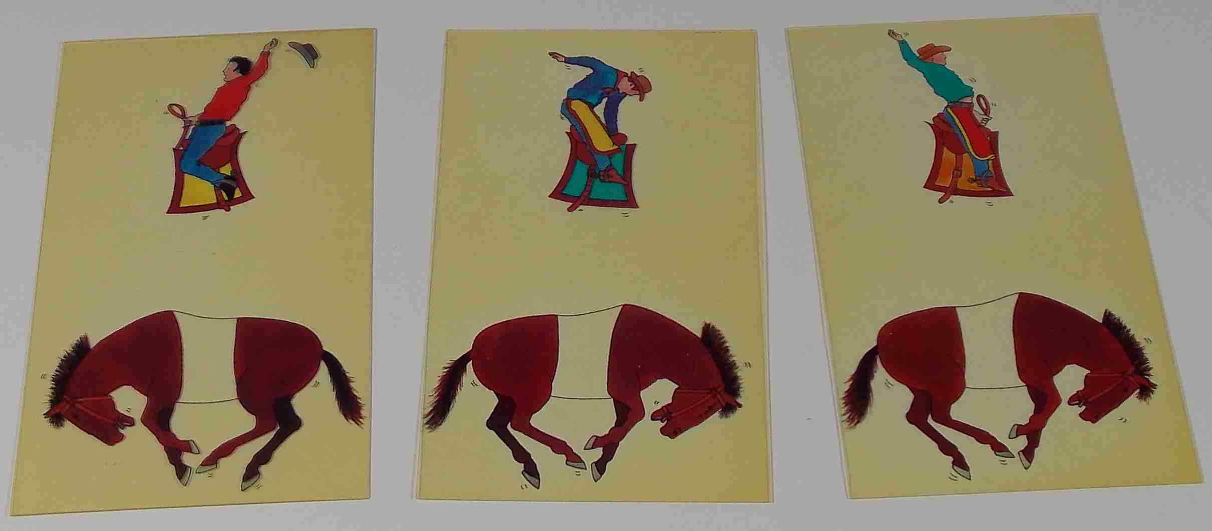 Horse puzzle | Sam Lloyd | Arrange 3 cards so 2 riders are on 2 horses |