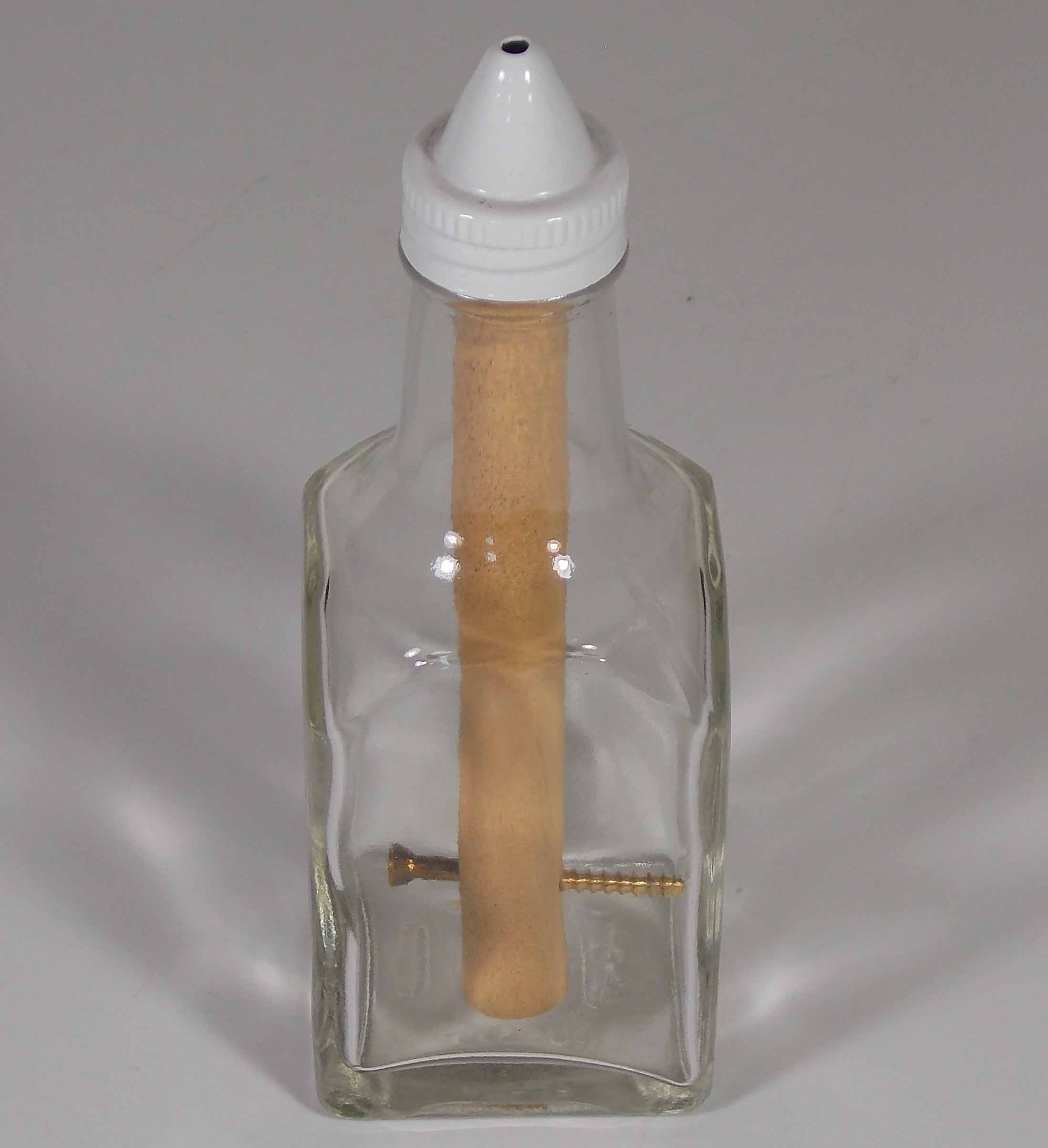 (screw in bottle) | (home-made) | Brass screw thru wood dowel in bottle |